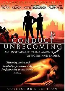 Conduct Unbecoming is a 1975 British period legal drama film directed by Michael Anderson and adapted by Robert Enders from Barry England's play of the same name. It features an ensemble cast, starring Michael York, Richard Attenborough, Trevor Howard, Stacy Keach, Christopher Plummer and Susannah York. Set in a British Indian Army barracks in the late 19th-century, the film centers on an impromptu court-martial following the assault of an officer's widow.