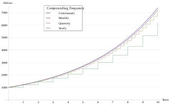 - ↑ Strictly speaking compounding occurs momentarily before payment is deducted so that interest is calculated on the balance as it was before deduction of the period payment.