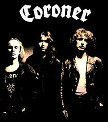 Coroner is a Swiss thrash metal band from Zürich formed in 1983, better known for the lineup formed in 1985. They garnered relatively little attention outside of Europe. The band broke up in 1996, but reformed 14 years later.[2] The band has performed at multiple live venues and festivals around worldwide since 2011, and as of 2023, they are working on their first studio album in more than three decades.[3][4]