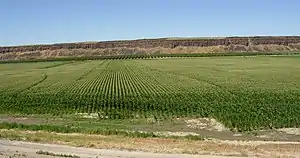 Potholes State Park is a 640-acre (260 ha) park on the shore of the Potholes Reservoir. It provides ready access to the Drumheller Channels National Natural Landmark which lies just downstream of the O'Sullivan Dam. This National Natural Landmark is an extensively eroded channeled scablands landscape, characterized by hundreds of isolated, steep-sided hills (buttes) surrounded by a braided network of numerous channels. All but the channel through which Crab Creek flows are currently dry. It is a classic example of the tremendous erosive powers of extremely large floods such as those that reformed the Columbia Plateau volcanic terrain during the late Pleistocene glacial Missoula Floods.[11][12][13][14]