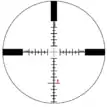 The P4 stadiametric rangefinding reticle as used in the Schmidt & Bender 5–25×56 telescopic sight. The small red figure in the images is the silhouette of a man standing at a range of 2,475 m (2,707 yd).