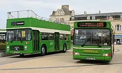 In January 2012 the fleet comprised 25 vehicles including modern coaches and the heritage fleet.[20] To operate its first four commercial services it added two Dennis Dart single deck buses and a part-open top Leyland Olympian from Xelabus, Eastleigh, also two Optare Solos and a Mercedes-Benz 811D minibus from Blue Iris Coaches, Nailsea.[21]