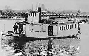 Crystal was a typical small steamer of the type that served small communities along Puget Sound. Crystal was built at Gig Harbor in 1904 for Miles Coffman. Crystal was propeller-driven, 45' long, and rated at 25 tons.[2] Captain Coffman placed Crystal on the run between Tacoma and Wollochet Bay, until she was replaced on this run by Audrey. After that, Crystal was repowered with a 50 horsepower (37 kW) gasoline engine and transferred to Port Angeles.