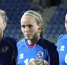 Dóra María Lárusdóttir (born 24 July 1985) is an Icelandic former football player who predominantly played as a winger for Icelandic club Valur. Having played for Valur for a decade and been voted national Player of the Year in 2008 and 2010, Dóra María was for many years one of Iceland's leading female footballers. During her career, she won the Icelandic championship eight times and the Icelandic Cup five times. From 2003 to 2017, Dóra María was part of the Iceland women's national team and she participated at the 2009 and 2013 editions of the UEFA Women's Championship.[1]