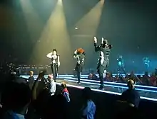 Following this, Jackson returned to Europe and was interviewed at Friday Night with Jonathan Ross,[90] before performing at Festivalbar in Italy,[91] and on Gala Xacobeo in Spain,[92] as well as appearing on a television special titled Janet hos Jarl, conducted by actor Jarl Friis-Mikkelsen.[93] Upon returning to the United States, the singer made a surprise appearance at New York's Gay Pride March,[94] and performed at the 2004 BET Awards;[95] the awards show was televised without a delay, unlike most of television shows featuring Jackson at the time.[96] In November 2003, Jackson's official website confirmed that a world concert tour in support of Damita Jo would take place in summer 2004, following the album's release.[97] Mario Winans was set to be one of the opening acts, but the tour never happened.[98]