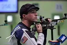 ![]() Daniel Lowe at the Rio Olympic Games 10-meter air rifle event | |