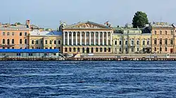 On the death of Count Nikolay Rumyantsev in 1826 his brother Count Sergei Rumyantsev inherited his property.[4] Sergei knew that his brother Nikolay had wanted his personal art and book collection to be accessible to society.[4] For this he decided to use the Rumyantsev house or mansion,[4] located on the English Embankment in St. Petersburg,[5][6] where Nikolay's collections were already stored.[7] The Rumyantsev Museum was established in 1828.[5] A decree was signed on 22 March 1828 regarding its establishment.[4] The collection was gifted to the government.[8] It was opened to the general public in 1831; initially one day a week for the general public and the remaining days for scholars.[9][10]