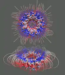 Pdb files are typically used as input for DelPhi calculations. Other required inputs are an atomic radii file and a charge file .[6] Binary Potential files as output from DelPhi can be viewed in most molecular viewers such as UCSF Chimera, Jmol, and VMD, and can either be mapped onto surfaces or visualized at a fixed cutoff.[7]