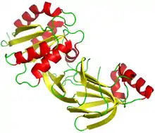 4. Miller DJ, Jerga A, Rock CO, White SW (July 2008). "Analysis of the Staphylococcus aureus DgkB structure reveals a common catalytic mechanism for the soluble diacylglycerol kinases". Structure. 16 (7): 1036–46. doi:10.1016/j.str.2008.03.019. PMC 2847398. PMID 18611377.