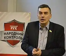 Dmytro Yevhenovych Dobrodomov (Ukrainian: Дмитро Євгенович Добродомов; born 13 January 1977) is a Ukrainian politician who served as a People's Deputy of Ukraine representing Ukraine's 115th electoral district from 2014 to 2019. He is the leader of the public movement "People's control".[1] Dobrodomov was a presidential candidate in 2019 Ukrainian presidential election. He withdrew from the election on 7 March 2019 in favour of Anatoliy Hrytsenko.[2]