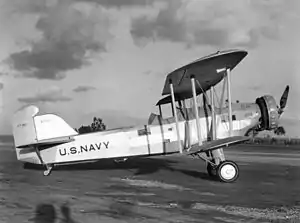The XT3D torpedo bomber (BuNo 8730) was first flown in 1931, it has been described as a large and ugly aircraft.[1] Of metal construction with a fabric covering the XT3D had folding wings and an arrestor hook for carrier operation.[1] With a fixed tailwheel landing gear and powered by a Pratt & Whitney R-1690 Hornet radial engine,[1] the XT3D had three open cockpits, forward for the gunner/bomb-aimer, centre for the pilot, rear for another gunner.[1]