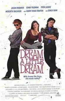 Dream a Little Dream is a 1989 American fantasy-romantic comedy-drama[3][6] film directed by Marc Rocco and starring Corey Feldman, Corey Haim, Meredith Salenger, Jason Robards, Piper Laurie and Harry Dean Stanton. It was filmed in Wilmington, North Carolina. This was the third film featuring The Two Coreys. A direct to video sequel, Dream a Little Dream 2, was released in 1994.[7]