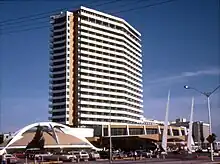 Groundbreaking for the tower eventually took place on October 20, 1962.[218][198] It was designed by Milton Schwartz,[219][69] and the opening was pushed back because of design changes.[220] The tower eventually opened in May 1965.[71] It had 510 rooms,[221][222][202] bringing the total room count to 960.[198] At 21 stories,[69][70] it was among the tallest buildings in Nevada.[70]