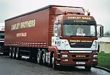 A 2001 ERF ECT 6x2 tractor truck (the cab was borrowed from the 2000 truck MAN TGA). It was followed by the ECM, and lastly the ECL before the shutting down of the ERF industry.