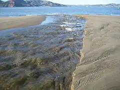 The San Francisco Bay is both a bay and an estuary. The former term refers to any inlet or cove providing a physical refuge from the open ocean. An estuary is any physiographic feature where freshwater meets an ocean or sea. The northern portion of the bay is a brackish estuary, consisting of a number of physical embayments which are dominated by both marine and fresh water fluxes. These geographic entities are, moving from saline to fresh (or west to east): San Pablo Bay, immediately north of the Central Bay; the Carquinez Strait, a narrow, deep channel leading to Suisun Bay; and the Delta of the Sacramento and San Joaquin rivers.