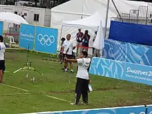 Ibrahim Sabry at the Junior Men's Individual archery competition taking place on 21 August 2010 at Kallang Field, Singapore. Ibrahim eventually won the event.