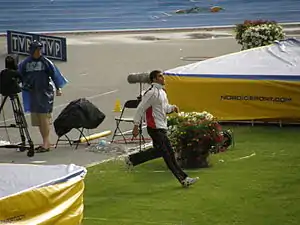 Seven Egyptian athletes, six men and one woman, qualified for the Olympics, although one did not compete. Noura Elsayed, the lone woman, was slated to run in the 800 metres, but withdrew due to injury.[14] The only Egyptian to participate in more than one event was Amr Ibrahim Mostafa Seoud, a veteran of the 200 metre event at the 2008 Summer Olympics.[15] Seoud, who had won gold medals in the 100 metres at the 2007 Pan Arab and 2011 All-African Games, and the 200 metres at the 2007 Pan Arab and 2009 Mediterranean Games, as well as the 2010 African Championships, met the "A" qualifying standard for both the 100 metres and 200 metres.[16] In the 100 m, he drew the same heat as world record-holder and defending Olympic champion Usain Bolt of Jamaica and finished fourth, which was insufficient to advance. He had the same standing in the opening heats of the 200 m.[15] Hamada Mohamed met the "A" qualifying standard for the 800 metres[17] and won his opening heat in London, advancing to the semifinals. He was placed in the same heat as David Rudisha of Kenya, the world-record holder and upcoming gold medalist, and finished eighth out of nine competitors, failing to reach the final.[18]
