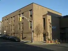 The gym building, connected to the main building via a second floor bridge that runs over New York Avenue