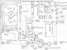 • c. 1843: Alterations and additions, all in an early style and using early sandstock bricks and mortar, consistent with its adaptation as an inn, therefore probably done in 1843 when Henry Adams, innkeeper, bought the property and transferred his licence for the Black Horse Inn to the property. Changes as follows: (1) rear two-storey wall of northwest side of house removed, large beams inserted and two long rooms created (possibly men's dormitory upstairs and communal eating room downstairs), infilling area between original house and kitchen; (2) upper stair landing altered to provide more head room on main stairs, resulting in the simultaneous removal of the original upstairs service entrance, and new entrance knocked through from middle stair landing; (3) service stair removed (previously connecting rear lower southeast wing and servants' room diagonally above it) probably due to reduced space in upstairs servant's room when landing changed; (4) outside cellar entrance inserted or enlarged. Shortly after this, the kitchen roof was raised and a mezzanine level added; and a scullery was added to the rear of the kitchen;.[3][1]