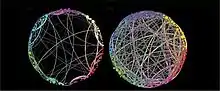 Simplified visualization of the persistence homological brain function scaffolds from placebo on the left and that induced through psilocybin on the right[37]