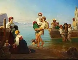 As more artists from Copenhagen began coming to Rome, he was reconciled with the past and, in 1827, started exhibiting in Denmark again. In 1833, his portrait of a Neapolitan fishing family was purchased by Crown Prince (later King) Christian. His painting of sailors carrying their passengers ashore on Capri has been reproduced numerous times.