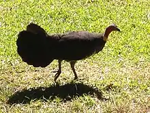 The red-necked crake (Rallina tricolor), previously thought to only occur as far south as Townsville, was first observed in the park in 1981.[18] The buff-breasted paradise kingfisher (Tanysiptera sylvia) and the white-browed robin (Poecilodryas superciliosa) are at the southern extent of their distribution at Eungella.[3] The regent bowerbird (Sericulus chrysocephalus) occurs at its northern limit in the park and surrounding area,[19][20][21] as do the brown thornbill (Acanthiza pusilla)[19][22] and the glossy black cockatoo (Calyptorhynchus lathami).[23] Australian swiftlets (Aerodramus terraereginae) breed in caves in the Finch Hatton Creek area,[20][24] and one of the few Australian records of glossy swiftlet (Collocalia esculenta) was in the park.[25]