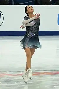 Evgenia Armanovna Medvedeva (alt. spelling: Yevgenia Medvedeva;[1] Russian: Евгения Армановна Медведева, IPA: [jɪvˈɡʲenʲɪjə mʲɪˈdvʲedʲɪvə]; born 19 November 1999), is a retired competitive Russian figure skater. She is the 2018 PyeongChang Olympic silver medalist (2018 ladies' singles, 2018 team event), a two-time world champion (2016, 2017), a two-time European champion (2016, 2017), a two-time Grand Prix Final champion (2015, 2016), a two-time Russian national champion (2016, 2017), silver medalist at the 2018 European Figure Skating Championships and bronze medalist at the 2019 World Championships. Earlier in her career, she won the 2015 World Junior Championships, the 2014 Junior Grand Prix Final, and the 2015 Russian Junior Championships.[2]