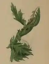 A leaf of Chrysanthemum corymbosum attacked by larva
