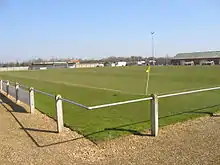 The club initially played at Hempton Green, with over 2,000 spectators in the ground to see a match against Holt in a match played on Good Friday.[6] They moved to Star Meadow in 1889, and then to Baron's Hall Lawn in 1907, a ground that was shared with the local cricket club. Cover and seating for spectators was provided by 'the Shed', a stand behind the goal at the Town End.[6] Floodlights were installed in 1987.[1] When the club were promoted to the Premier Division of the Eastern Counties League in 1992 they were given three years to find a new ground or be relegated.[2]