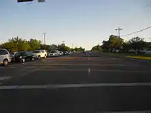 FM 1938 (Davis Boulevard) begins at its southern terminus with SH 26, directly besides the raised Interstate 820 (I-820) freeway. FM 1938 continues on for about 0.2 miles (0.32 km) before two exit ramps coming from I-820 merge with it, giving incomplete access to the freeway. The highway proceeds as a paved, asphalt, six-lane highway, with a center left-turn lane dividing it. The road continues through "downtown North Richland Hills", passing several small businesses and large residential neighborhoods. Along this stretch, FM 1938 is traveling due north.[3] After an intersection with Smithfield Road, the highway turns in a northeastern direction and heads that way. It continues through North Richland Hills, intersecting with several large roads and passing a set of railroad tracks. The highway heads north for about 5.5 miles before intersecting with FM 3029 and entering the city of Keller. The highway proceeds through Keller, passing several small businesses and large neighborhoods. FM 1938 passes through Keller for about one mile (1.6 km) before passing over a small creek and entering the city of Southlake.[4] Just after entering Southlake, the highway passes a large landscaping and stone supplies facility. FM 1938 continues through Southlake for approximately one mile (1.6 km), passing several small businesses, before reaching its northern terminus, as of 2012, FM 1709.[5]