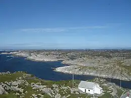 Fedje is the largest island in Fedje Municipality in Vestland county, Norway. The 7.2-square-kilometre (2.8 sq mi) island is home to almost all of the municipality's residents. The island sits west of the Fedjefjorden, south of the mouth of the Fensfjorden, and north of the islands of Øygarden. The North Sea lies to the west of the island. The main population center on the island is the village of Fedje on the northern coast of the island. The southern coast of the island is the site of the other village on the island, Stormark. The 47-metre (154 ft) tall Fedjebjørnen is the highest point on the mountain. Hellisøy Lighthouse lies just off the southwestern coast of the island.[1]