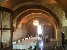Inside the restaurant with musketry loopholes used as small windows