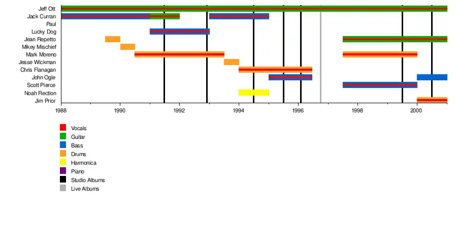 Fifteen was a punk rock band formed by Jeff Ott and Jack Curran. According to Ott, the band's only consistent member in its 11-year history, Fifteen had a revolving door total of fifteen members by the time the group disbanded in 2000: Jack Curran, Mikey Mischief, Mark Moreno, Jean Repetto, Lucky Dog, Chris Flanagan, John Ogle, Jesse Wickman, Joe Cable, John Quintos, Scott Pierce, Jim Prior, Lisa D., Vanessa Bain and Ott himself.[1]