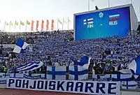Finnish national team supporters at the Helsinki Olympic Stadium in 2009.