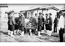 The fire fighting system of the Joseon Dynasty was established in 1426 (Sejong 8th year), the first firefighting organization specialized in the Korean Peninsula was set up under the salary, and began taking charge of the fire protection work.[6] Initially, the forbidden army suppressed the fire, renamed the fire battalion as Ghum-Hwa(금화,禁火. fire fighter) in the dynasty era and working for 24 hours.[7][8]