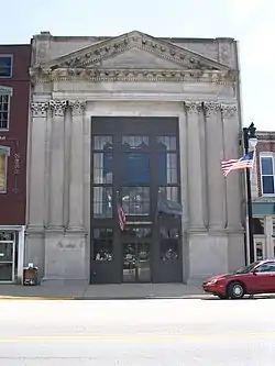 The First National Bank is a historic bank building located at Terre Haute, Vigo County, Indiana. It was built in 1892 and remodeled in 1928, and is a two-story, Classical Revival style limestone building. It features a central pedimented pavilion supported by Corinthian order columns.[2]: Part 1, p. 22