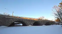 The First Street Bridge is a stone arch bridge in Merrill, Wisconsin, which carries First Street across the Prairie River. The bridge is 130 feet (40 m) long and has three arches. Each arch is bordered by an alternating pattern of single and double stones and is capped by 30-inch (760 mm) keystones.[2] Contractor Fred Hesterman built the bridge in 1904, replacing an existing bridge. The bridge is the only known three stone arch bridge in Wisconsin.[3]