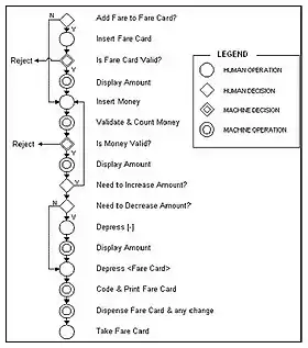 Subway Fare Card Machine Flow Process Chart (which doesn't use the ASME standard set of symbols).