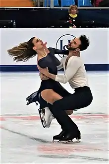 The free dance (FD) is a segment of an ice dance competition, the second contested. It follows the rhythm dance (RD). Skaters perform "a creative dance program blending dance steps and movements expressing the character/rhythm(s) of the dance music chosen by the couple".[1] Its duration is four minutes for senior ice dancers, and 3.5 minutes for juniors. French ice dancers Gabriella Papadakis and Guillaume Cizeron hold the highest recorded international FD score of 137.09 points.[2]