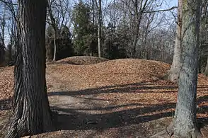 Freestone Point Confederate Battery is a historic American Civil War gun emplacement located at Leesylvania State Park, Woodbridge, Prince William County, Virginia. The battery has four individual gun emplacements, which are fairly simple in configuration. All are formed by a large, deep, rectangular depression with high earthen berms built up on the north and south side of each depression. Three of the batteries are located on the cliff about 90 feet above the Potomac River. For five months, from October 1861 to March 1862, the batteries contributed to the Confederate military's success in blockading the Potomac River.[3]