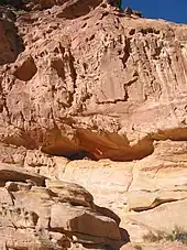 Typical "Moki Hut" placement in the crevice of the cliff
