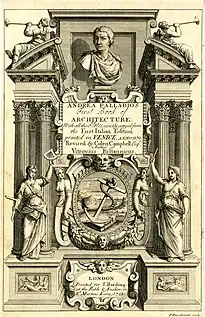 It was noted by Richard John Riddell, who analysed entrance-porticos in English Renaissance architecture, that the most impressive and architecturally sophisticated frontispieces were often set against houses 'by men who enjoyed or aspired to preferment and high office, with the immense political power and social prestige, and by academics who wished to give permanent expression to the distinction of their college and university'.[4] Frontispieces of this nature were purely for applied and decorative functions, even the 'fullest extent of the role of the columns in their load-bearing capacity was to hold up each other and not the building'.[4]