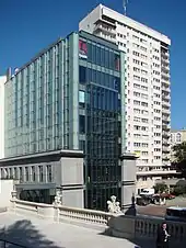 In 1945 the Fryderyk Chopin Institute reopened, on Warsaw's Zgoda Street, and since 1953 has been housed in the Ostrogski Palace.[1] This is also the home of the Fryderyk Chopin Museum, Library and Collections of Photographs and Recordings.[2] The museum covers the history and works of Chopin and includes original manuscripts and documents written by the composer, photographs and sculptures of him, and letters. It also hosts piano recitals and competitions of Chopin's works.[3] The rich plafonds, stucco and Pompeian style frescoes are a fitting setting for the rooms of the Fryderyk Chopin Museum.[2]