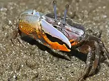 Gelasimus vocans is a species of fiddler crab.[2] It is found across the Indo-Pacific from the Red Sea, Zanzibar and Madagascar to Indonesia and the central Pacific Ocean.[3] It lives in burrows up to 50 centimetres (20 in) deep.[3] Several forms of G. vocans have been recognised, with their authors often granting them the taxonomic rank of full species or subspecies.[4]