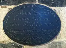 Symes died in St Andrew's Presbyterian Hospital in Adelaide on 26 August 1980, and was buried in Centennial Park Cemetery. He was survived by his wife. A memorial to George and Katherine Symes was dedicated in the chapel of the York and Lancaster Regiment in Sheffield Cathedral in 1982. His papers are in the State Library of South Australia, except for his wartime diaries, which are in the Imperial War Museum.[1][25]