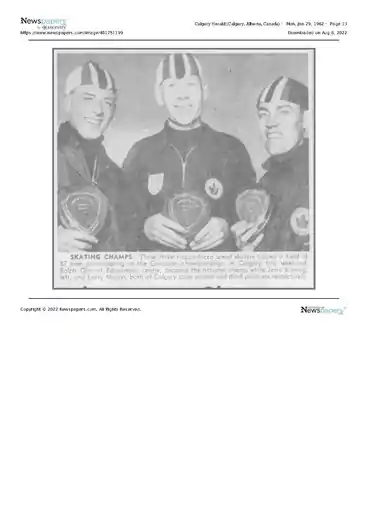 - ↑ Simnett, Tony (9 February 1963). "Skater Piles Up Miles". The Albertan. p. 17. Retrieved 8 August 2022.
