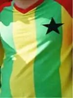 Between 1990 and 2006 the Ghana national team used the kit in the colours of the national flag of Ghana, with gold, green and red used, as in the team's crest and also known as the Pan-African colours. The gold with green and red kit concept and design was used in the 60s and 70s, and designed with gold and green vertical stripes and red shoulders. An all black second kit was introduced in 2008 and in 2015, Black Stars' gold-red-green coloured kit and all black coloured kit is to be reassigned to the position of 1st and 2nd kits following the induction of a brown with blue and gold coloured Black Stars 3rd kit in 2012.[21][22]