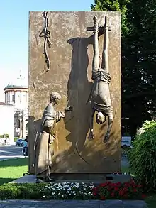 - ↑ "Giacomo Manzu; Atheist Sculpted Doors for Vatican". Los Angeles Times. January 22, 1991. Retrieved 17 May 2014. Giacomo Manzu, 82, Italian sculptor who created the bronze "Doors of Death" in St. Peter's in the Vatican. Often at odds with the Catholic hierarchy because of his atheism and his mocking figures of cardinals, Manzu was a close friend of Pope John XXIII, who prodded him to sculpt the mammoth doors dedicated in 1964.