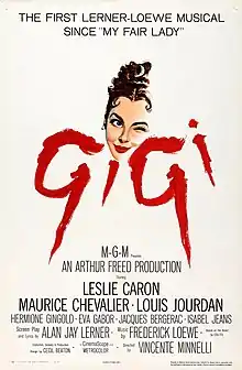 Gigi (French pronunciation: [ʒiʒi]) is a 1958 American musical romantic comedy film directed by Vincente Minnelli and processed using Metro-Goldwyn-Mayer's Eastmancolor film process Metrocolor. The screenplay by Alan Jay Lerner is based on the 1944 novella of the same name by Colette. The film features songs with lyrics by Lerner and music by Frederick Loewe, arranged and conducted by André Previn. Costume design was done by Cecil Beaton (hats by Madame Paulette).