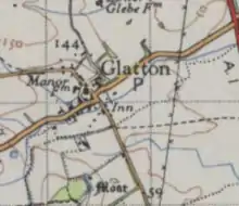 In the 1870s, John Marius Wilson described the village as "GLATTON, a village and a parish in the district of Peterborough and county of Huntingdon. The village stands 3 miles SSW of Stilton, and 3½ WSW of Holme r. station."[7]